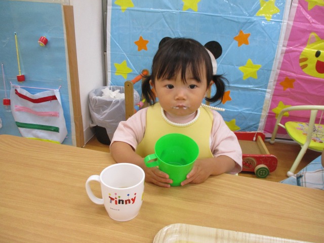 最終登園後、それぞれの遊びが一段落したら、各々席について牛乳を飲んで、給食までのエネルギー補給をします。