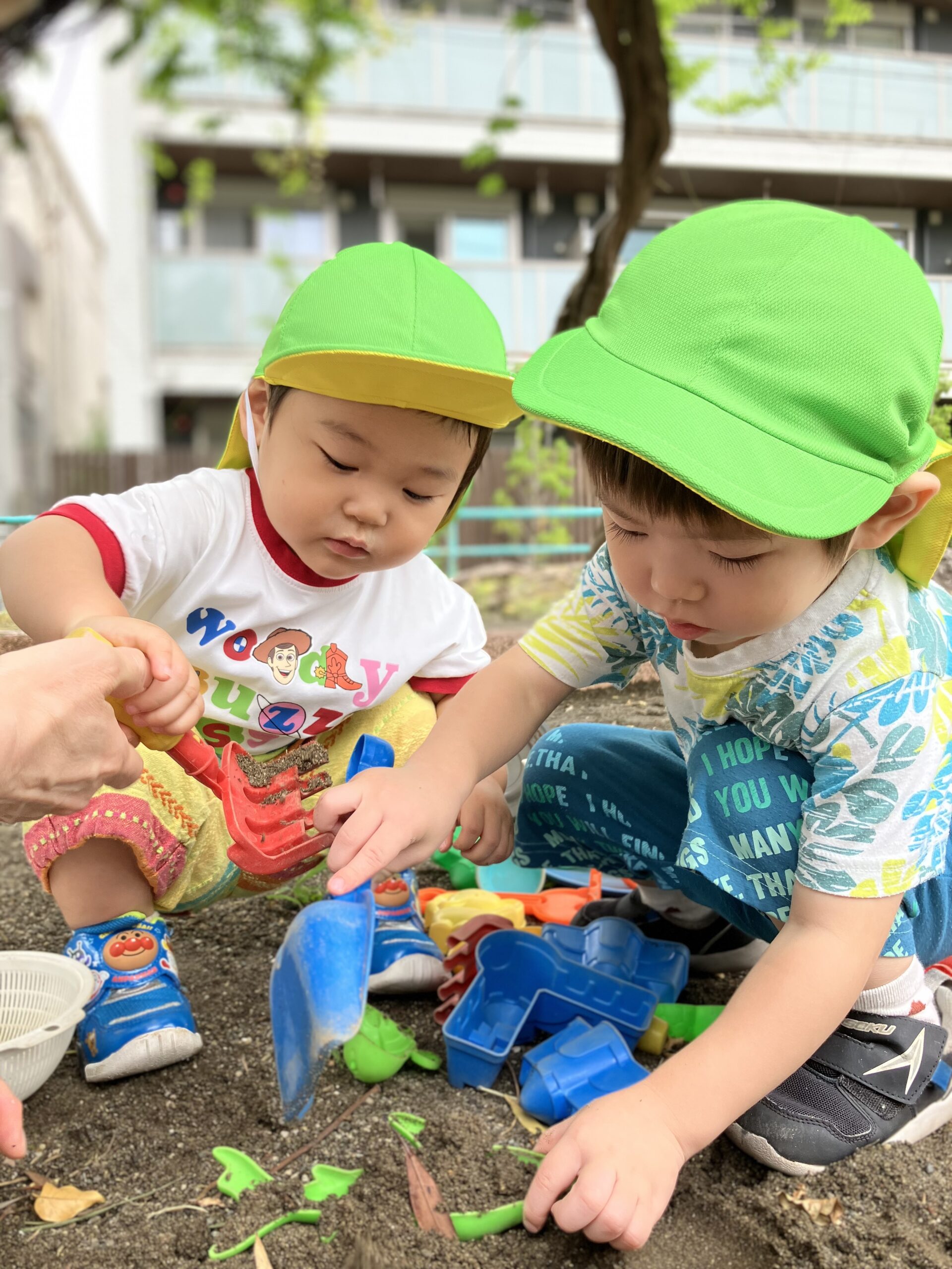 天気の良い日は、戸外で遊びます。近くの公園で滑り台をしたり砂場で遊んだり咲いている花や小さな虫を見つけたり…危険がないよう見守りながら子どもたちの“やりたいこと”“やりたい気持ち”を大切にします。