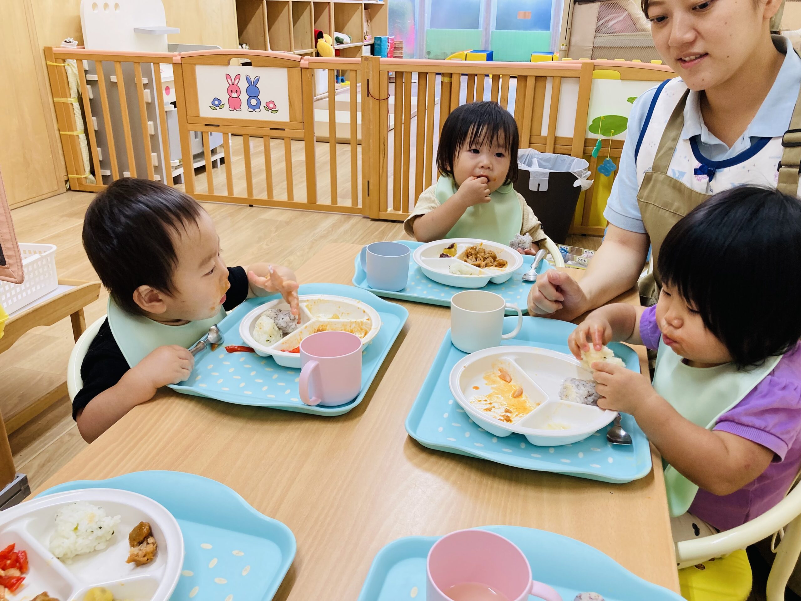 乳児にとっておやつは、4回目の“食事”。おにぎりやサンドウィッチ、お好み焼き、蒸しケーキなど、子どもたちの大好きなメニューで1日の栄養バランスを整えます。