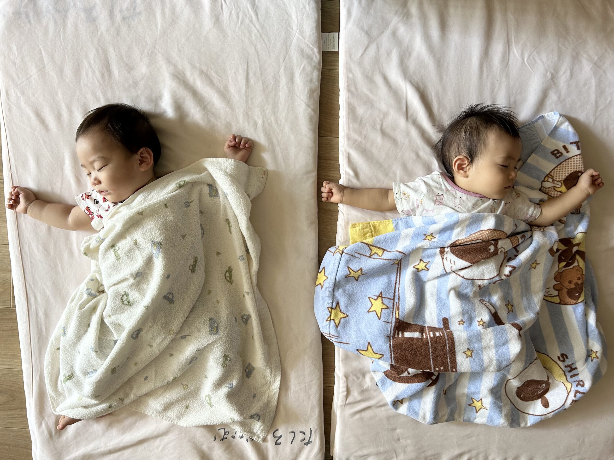 たくさん活動した後は・・ 心と体を休める大切な時間です。先生にトントンしてもらいながら眠りにつき、たっぷり寝て午後の活動に備えます。